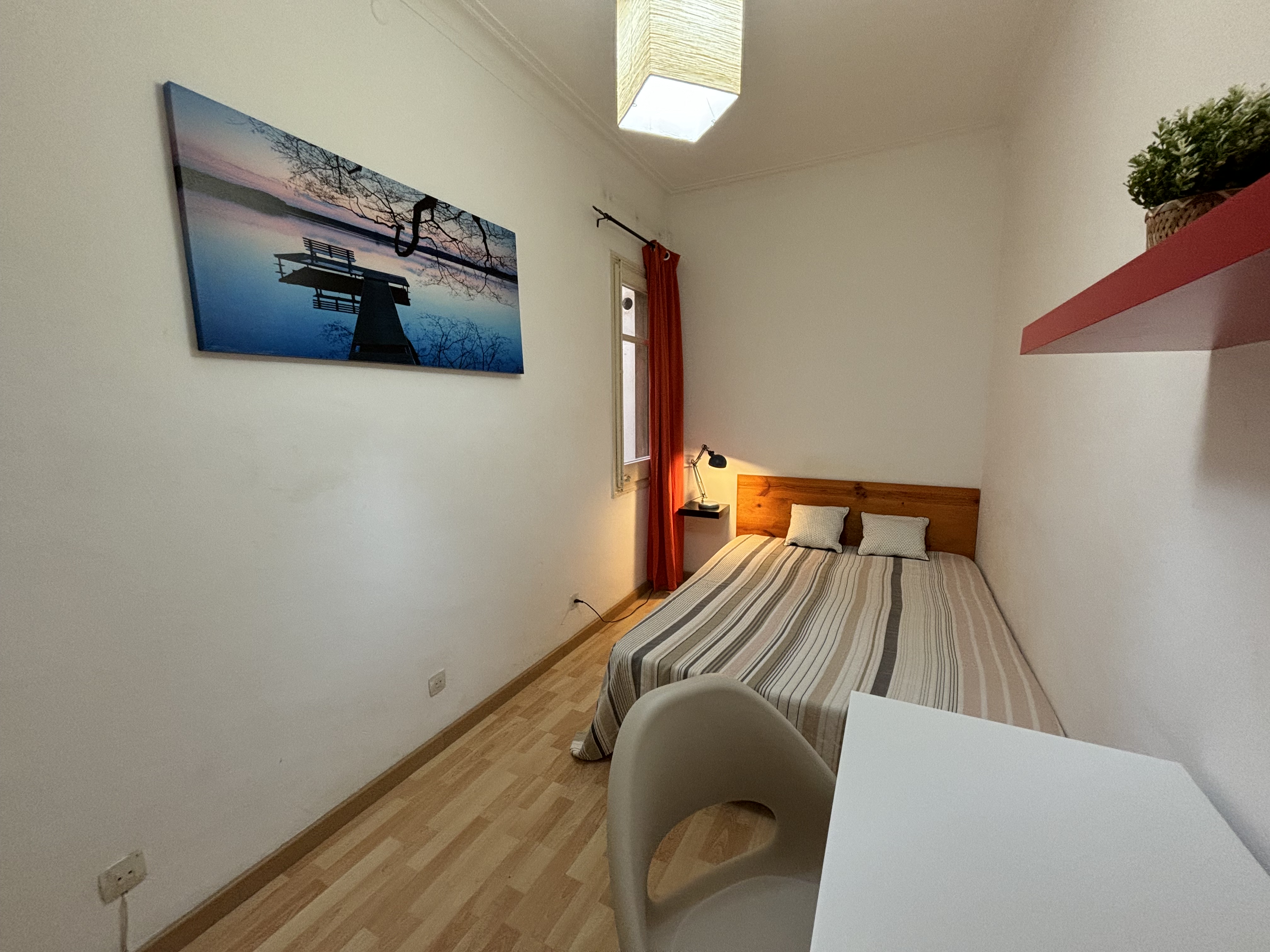 Las fotografías mostradas de esta habitación en piso compartido en Barcelona tienen carácter orientativo, no contractual, ya que el aspecto del apartamento en el momento de la entrega puede diferir respecto de las imágenes aquí mostradas, sin que ello implique alteración sustancial de las condiciones pactadas.